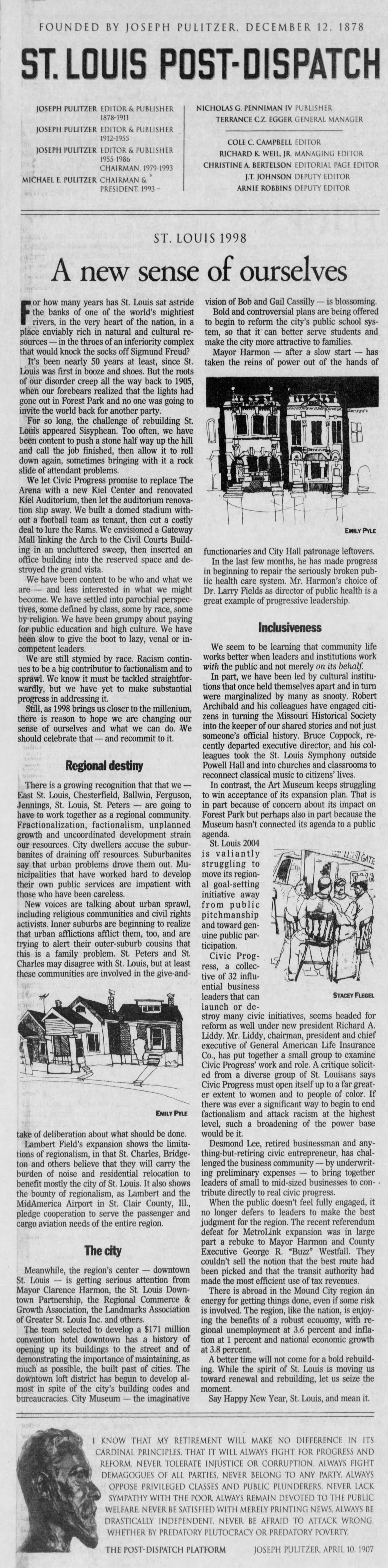 The Post-Dispatch editorial page welcomed the new year a quarter century ago by mixing a requisite dollop of civic boosterism and Pollyannish claptrap with soft criticism and multisyllabic buzzwords. Reading the Jan. 1, 1998 editorial is a reminder of how little some things have changed in St. Louis — and how the editorial page, back during the waning years of the Pulitzer ownership and the brief tenure of editor Cole Campbell, was rarely a source of illumination or enlightenment.