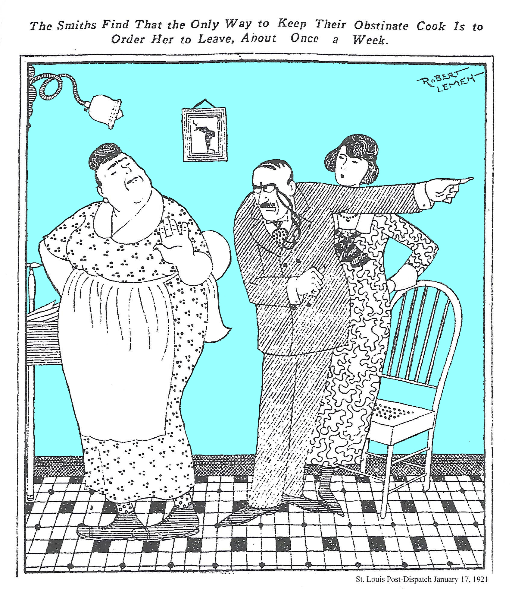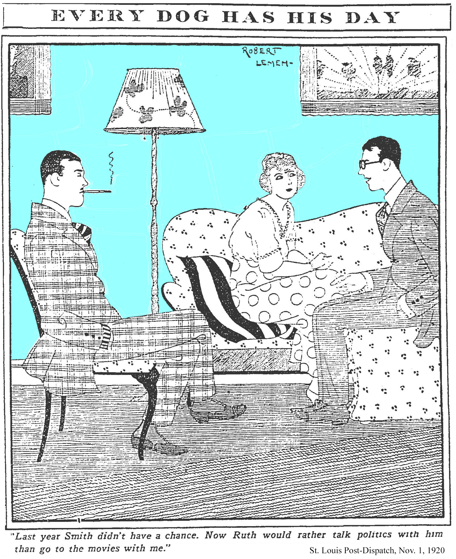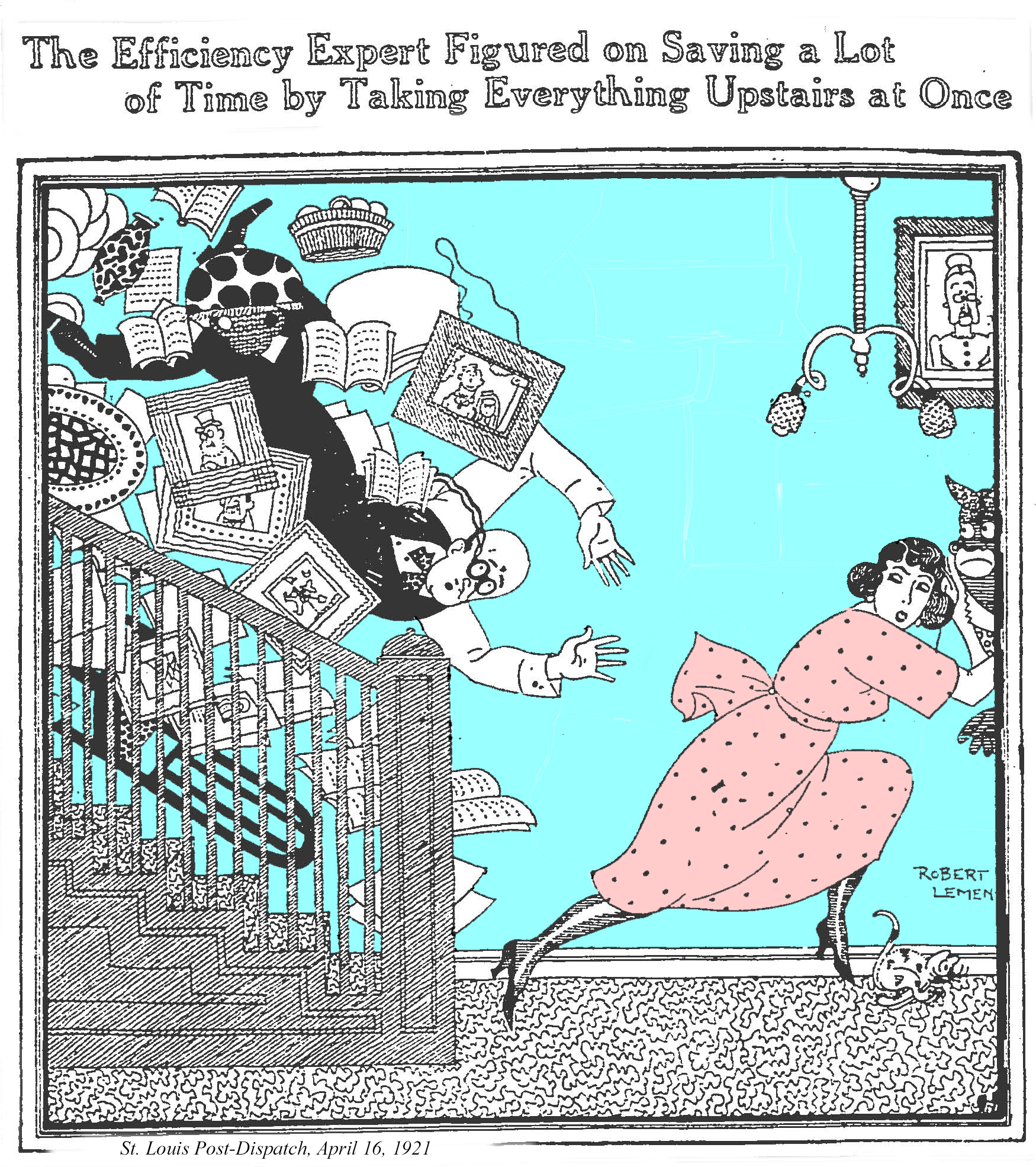 Joseph Robert Lemen (1890-1955) was born in St. Louis, went to art school at Washington University, married in 1912, joined the St. Louis Post-Dispatch as an artist a couple years later and remained with the paper until sometime in the 1920s when he took off for California.