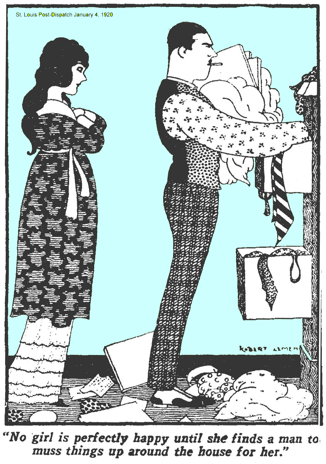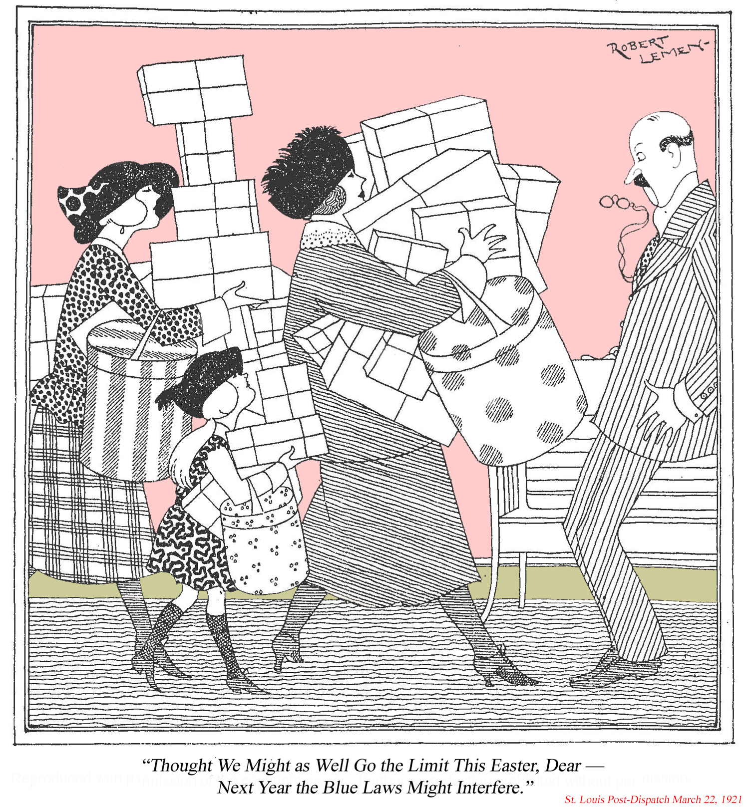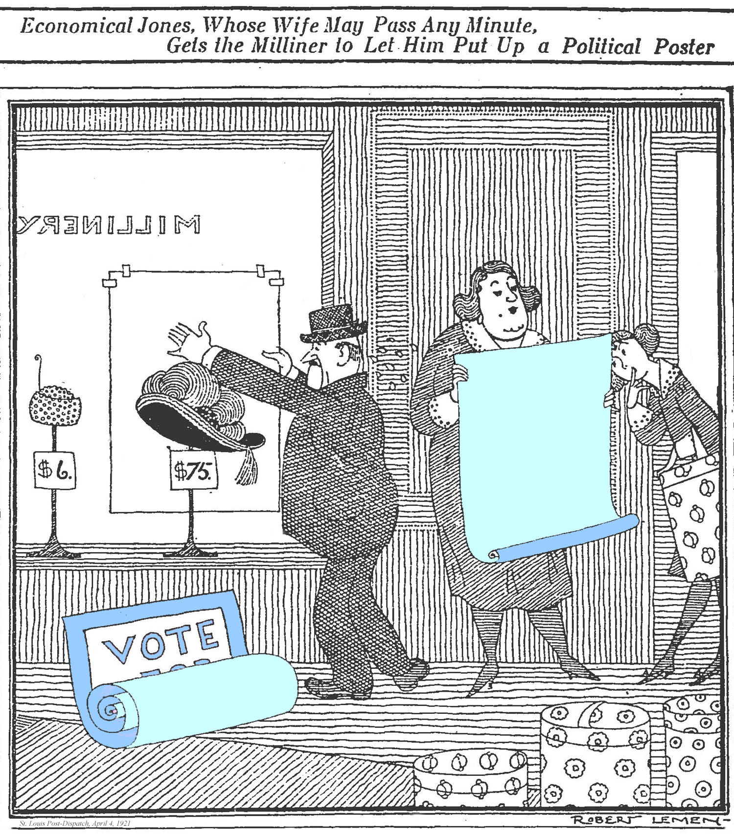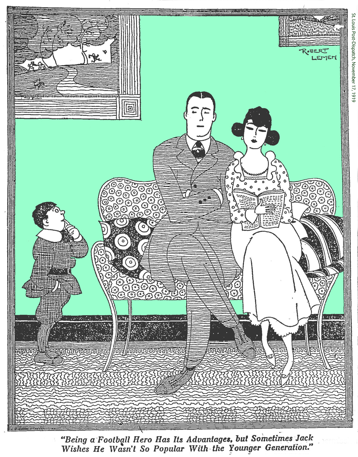 Joseph Robert Lemen (1890-1955) was born in St. Louis, went to art school at Washington University, married in 1912, joined the St. Louis Post-Dispatch as an artist a couple years later and remained with the paper until sometime in the 1920s when he took off for California.