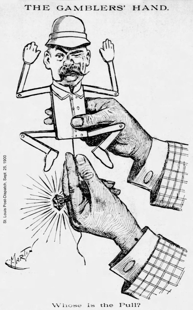 It didn’t help that their Catholic priest also weighed in on the matter: “It will be recalled that Father Coffey, the pastor of the church of which the Butler family are members, openly denounced ‘Col.’ Butler from the pulpit recently and this ownership of the alleged poolrooms was one of the features upon which Father Coffey touched with vigor,” the Post-Dispatch reported on Feb. 6, 1902.